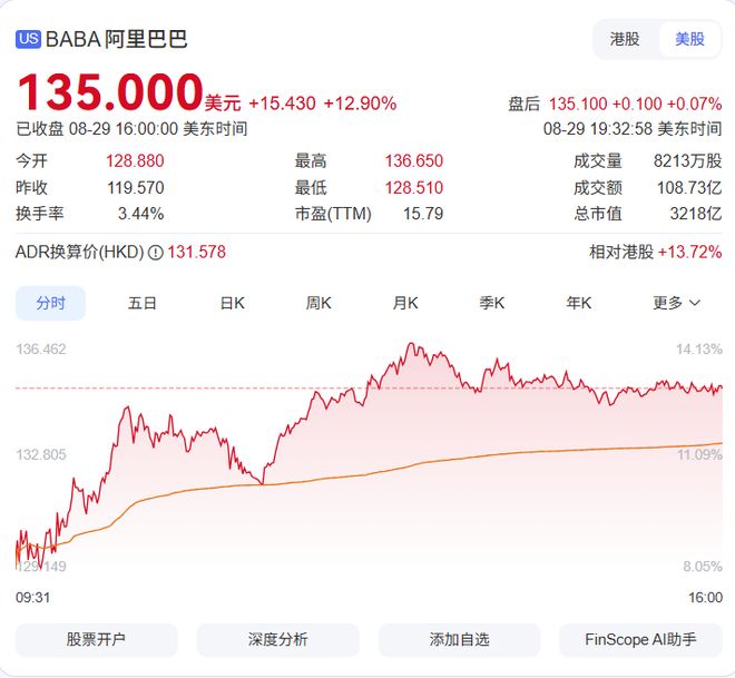 股价上涨了13%,阿里巴巴电话:AI芯片供应有B计划,闪光销售和即时零售业预计将在未来三年内带来1万亿元的新交易