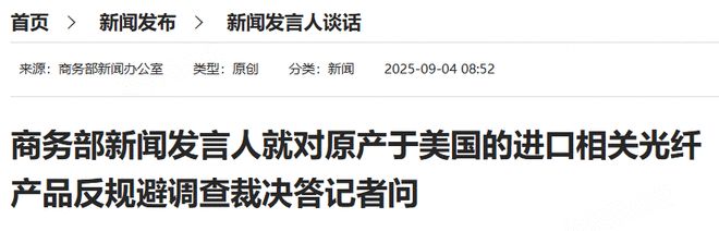 问:我们注意到,商务部的网站发布了一条公告,该公告对起源于美国的进口纤维相关产品采取了反逃避步骤。您可以介绍相关情况吗?答案:2025年3月4日,在中国国内公司的应用中,商务部对源自美国的纤维纤维产品的进口切割长度进行了反逃避调查。此案是中国的第一次反逃避调查。提起案件后,商务部根据法律和法规进行了调查,调查程序是开放和清晰的,完全保护了所有有关方面的权利。调查后,有证据表明,美国出口商通过导出相关的截止截止时间的截止长度,避免了中国在非散发产品去除单模纤维产品中的反倾销步骤雪人的雪斗。中国的纤维。根据调查的结果,商务部发布了公告,决定从2025年9月4日起实施反逃避措施。2025年第48号商务部的宣布宣布了对从美国派生的截止波长去除截止波长的决定的决定。 20025年3月4日,为响应Changfei Fiber Cable Co,Ltd的应用,商业部发出了2025年第14号公告,决定调查与美国截止单式拆卸长度有关的反倾销进口指标。商务部正在调查该进口是否与美国的临界长度单模纤维有关,这是在中华人民共和国共和国《外国贸易法》第36条中制定的预防外交贸易救济步骤的姿态。根据调查的结果,根据《中华人民共和国外贸法》第37条,调查当局正在做出决定(请参阅附件)。相关对象如下:1。商务部决定,通过更改贸易模型来导出中国单光纤模式的相关截止长度(G.654.c纤维),这不是足够的商业公义反倾斜进口进口,这些进口物的进口量是单一模式抗雨水源于美国的不可能预防的,起源于美国。 2. Current anti-dumping steps on April 21, 2011, the Ministry of Commerce released Announces No. 17, 2011, which decides to impose anti-dumping duties in the United States, along with the implementation period of 5 years from April 22, 2011. On April 21, 2017, the Ministry of Commerce Insued Announcement No. Anti-dumping duties in imported non-scattered removal of single-mode optical fibers originated in the United States starting April 22, 2017年,实施了5年n。 On July 10, 2018, the Ministry of Commerce released an announcement No. On April 21, 2023, the Ministry of Commerce released an announcement No. The specific description of the products that apply to the current anti-dumping measures are as follows: Chinese name: Single Fiber English Name Removal Name: Spread unshifted SIANGLE-MODE Optical FiberSpecific Description: The separated removal of single fiber mode is commonly called G.652 fiber or G.652单光纤模式。它有两个窗口:1550nm和1310nm。零点位于1310nm窗口附近,而最小衰减位于1550nm窗口中。当设计和制造过程中的长度接近1310nm时,其属性为零,当长度为1550nm时,损失是最小的,但分散剂最大。上面两个窗口中非分散位移单模光纤的典型损耗值是:1310nm窗口的衰减为0.3至0.4 dB/km,分散coef高度为0至3.5 ps/nm.km,1550nm窗口的衰减为0.19至0.25 dB/km,分散系数为15至18 ps/nm.km。主要工具:单模光纤的非脱离拆卸具有Mabainternal损失,大带宽,易于升级和扩展以及低成本的好处。它可以广泛用于交付高速和长距离,例如长期通信,中继线,有线网络和循环馈线。该产品被归类为“中华人民共和国的税收出口和出口”:90011000。其他类型的光纤,光纤束和该税号下的光电缆的光纤。 3.反逃避步骤根据调查结果,国务院关税委员会的商业委员会建议调整税收范围。国务院的关税委员会根据商务部的建议做出了决定。根据《 Forefi》第49条中华人民共和国的GN贸易法,《人民共和国关税法》第54条以及中华人民共和国反倾斜法规的第55条,从2025年9月4日起,目前的反倾斜税率是进口的非淘汰的非上悬挂消除,这些消除影响了偏离偏僻的单独占地单独的单独撤离式福利,从而脱离了联合国的偏僻型号,联合国造成了联合国的统一税率。申请预防预防措施的产品的具体描述如下:产品名称:相关截止波长单模式光纤(G.654.c光纤纤维)英文名称:通过单模光纤传输的特定截止光纤(G.654.c光纤)光纤长移位光纤单模式光纤单模式或G.654。 Fiber。窗口中的标准值是1550nm的光纤:1550nm的窗口衰减为0.14〜0.20dB/km,并且分散系数不超过20PS/(NM×km)UCT被归类为“中华人民共和国的税收出口和出口”:90011000。根据本税法规定的其他产品不在该反逃避提议的范围内。对每家公司征收的反倾销税率如下:1。Corning37.9%(Corning Incorporated)2。税收方法从2025年9月4日开始,进口运营商必须在进口源自美国的单模单模链的相关截止时间时,必须对中华人民共和国征收相应的反倾销税。反倾销税的价值是根据海关确定的进口商品的税率计算的。计算公式为:税收的反倾销量=海关的进口商品的税率×确定反倾销税率。进口过程中增加了税款iS根据由海关和关税确定的进口商品的税率以及反倾销职责作为纳税价格而计算的。 5。应对反倾斜步骤进行提案期限,以与源自源自美国的单模链的相关截止长度,从2025年9月4日至2028年4月21日,即无明显的单模纤维纤维的反倾斜措施的日期。 6。在实施分析的反评论步骤期间,相关的各方可以在合理的时间之后向调查机构提交书面申请,并评估本公告中持续实施步骤和级别的步骤的需求。 7。根据《中国人民共和国外国贸易法法》第65条的管理和行政管理,如果您对这一反逃避决定不满意,您可以根据法律申请对行政的重新审议,也可以根据法律向人民提起行政诉讼。 8。此公告必须从2025年9月4日实施