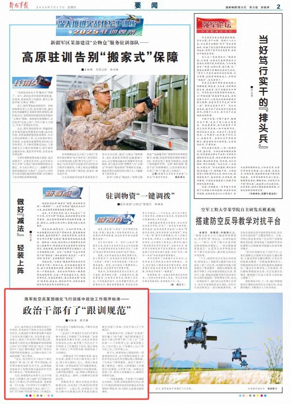 海军航空队的特定部门正在完善飞行训练中的政治活动标准 - 政治干部拥有“最近的训练标准”■刘hengtao Zhou Ziqiang,特定的海军航空公司部门组织了定期的政治活动。根据他们最近的培训经验,有许多政治干部,仔细评估了军事培训中政治工作的问题和缺点并讨论改进方法。在该地区,政治部门的董事仔细记录,并准备在该部组成的“四个阶段”的“四个阶段”的“习俗”中组织每个人的演讲。刘说:“这种'培训标准'包含许多实践和有效的经验和技能,这使NG政治工作的有效性增加了一倍。D缺乏对军事训练的研究。这种现象导致在进行军事训练和准备方面的政治工作表现不足。 "Department leaders admitted. As a result, the department has arranged business backbones to identify various aircraft models and various courses, greatly reviewed the key points of political activities in flight training, and refined the political work in each battle position of the four main links: Pre-preparation, direct preparation, flight implementation, and flight analysis, and consists of a "political standard for" four stages "of flight training ", and combined the skill of follow-up training with political CADs, and improved 它。”此“工作代码”为我们提供了执行政治培训工作的实用指南。 “该部门的公司老师Xie Yongjie说,当他被官方参谋人员取代时,他没有打开局势。正确的方向。根据处理“工作代码”计划的处理,帮助陈陈恢复了他的信心,并将自己的州恢复到了课程培训老师。最终,小陈成功完成了预定的任务。培训后,Xie Yongjie调整了情况,并将其添加到处理“工作代码”库的特殊情况中。由于标签的开始,该部门政治干部通过培训部采用了许多意见和建议以及培训培训,并融入了“工作法规”中。部门负责人提出,为了将“生命线”更好地整合到“链链”中,他们探索并建立了“三部分和三对一和三对一的“政治干部与军事干部 - 职责之间的工作机制”,将意识形态指南分为恒定;工作计划分为MGA点,工作的实施已en固定;工作方法分为点,工作目标是固定的。之前,该部门参加了由上级组织的重要培训任务。由于长期以来,一些学员和士兵感到焦虑,他们的工作动机在任务的后期降低了。当政治李·齐汉(Li Zihan)发现这种情况时,他立即遵循“工作守则”中的案件,并与军事干部合作,为军官和士兵做意识形态工作,以帮助每个人缓解压力并确保正确完成工作。 “结果就像可以辐射光线和热量的热源。”最近,部党委员会决定扩大和扩大其他领域的“工作代码”中探索和开发的经验和技能。帮助全面建设部队提高质量和效率。