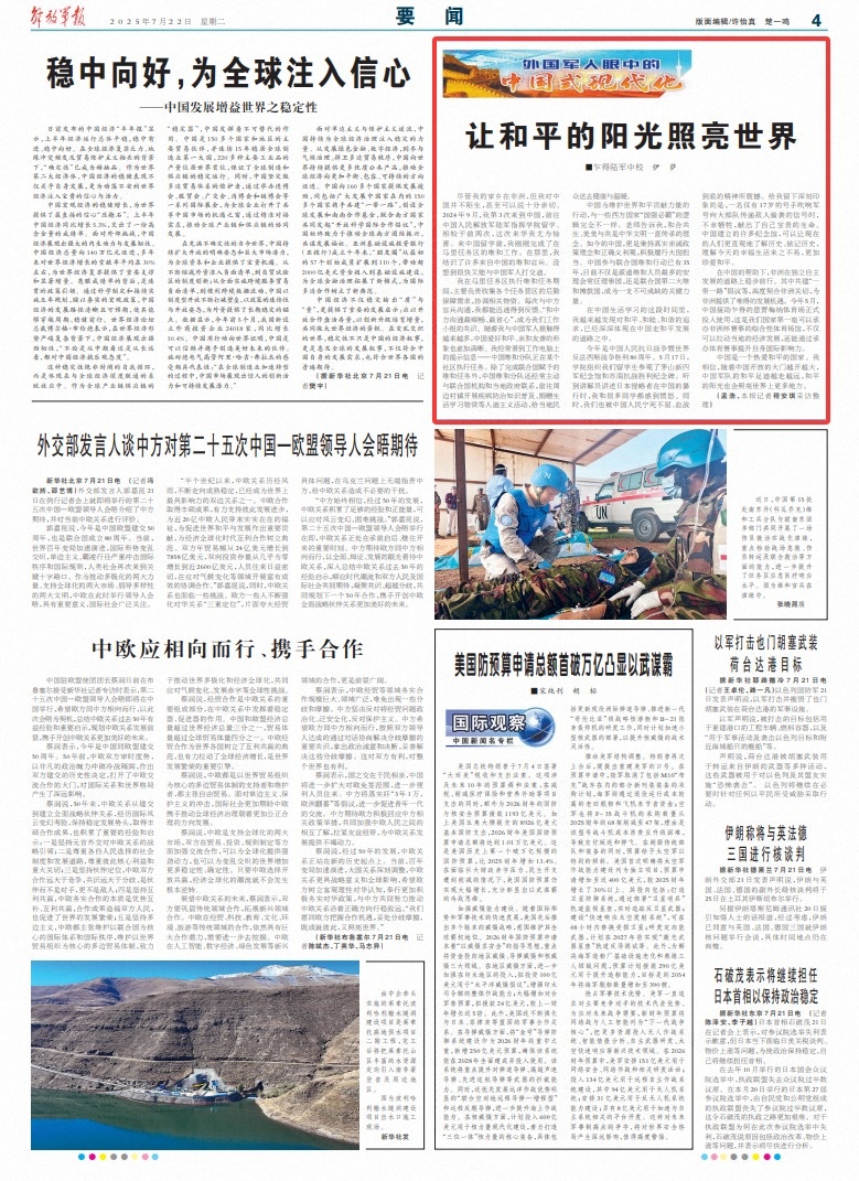 让世界和平日照亮世界■乍得军队中校,即使我的家乡在非洲,我对中国不熟悉,据说它非常友好。 2024年9月,我第三次去了中国,前往人民解放军陆军指挥学院出国留学。与过去两次相比,当我这次到达中国时,我感到特别惊讶。在去中国学习之前,我刚刚完成了马里缺失地区维持和平的工作。在那里,我遇到了许多来自中国的维持和平和士兵。出乎意料的是,我可以尽快与中国士兵打交道。在我在马里失踪区域的维持和平任务中,我主要负责收集每个任务营的后勤支持需求,并与相关材料协调。每当我与中国官员和士兵提出联系时,我都可以迅速获得反馈。我们的W已同意:“与中国交谈是最响亮,最关心的Orking团队。当我与更多的中国士兵接触时,中国对和平,友好和友好的形象变得更加清晰。我经常在我的工作计算机上看到提示消息 - 中国维持和平团队正在社区中执行任务。除了完成联合国分配的维持和平任务外,中国维持和平团队经常开始与联合国和地方政府机构进行互动,并前往周围的村庄和城镇进行人道主义活动,以影响疾病,控制知识,生活方式以及生活方式,生活 - 生活 - 生活和材料。中国为维持世界和平的贡献的行动与一些西方国家的逻辑完全不同,即“该国将是强大并且将是霸权”的逻辑。老师告诉我,团结,象征和美丽是中国文明始终继承的概念。今天,中国遵守政策的概念真正的友谊,诚实和对正义和利益的正确看法,并积极履行主要国家的责任。中国已参加联合国维持和平业务已有35年了。目前,它不仅是安全理事会的常设成员,其中维持和平人员数量最多,而且是联合国已审查的第二大维持和平人员,这已成为必要的主要力量。在中国的生活和研究期间,我更加发现和平,团结与团结的渴望在中国和平发展的道路上得到了证明。今年中国反对日本入侵和世界反法西斯战争的中国战争胜利80周年被标记了。 5月17日,该学院组织了我们的国际学生参观Maoshan新的第四军纪念馆和南方南方的反日战争胜利纪念馆。我和我的许多同学当我们听到导游告诉中国凶猛的日本入侵者时,很生气。同时,我们也对宁愿死去而不是放弃并为最后战斗的中国人的精神感到惊讶。我钦佩我的小号,只有17岁,不幸的是,当他骑着战争小号并打包敌人袭击大军的信号时,他牺牲了他的宝贵生命。在中国建立的许多记忆厅都可以使当今的人们更加直观地了解历史,并记住历史,了解当今的幸福生活是艰苦的工作,而对和平的热爱。在中国的帮助下,非洲继续走上独立发展的道路。其中,“皮带和道路”计划的联合建设符合非洲的关注,并为非洲提供了罕见的发展机会。今年5月,中国帮助乍得的Njamena体育场被正式使用。这是我国第一个可以在非洲杯中提供活动,这不仅会有所帮助。为了推动当地的经济发展,它还可以通过体育赛事的Pagho主持人来增强国际影响力。中国是一个热爱和平的国家。我相信,随着中国的门开口变得更宽,中国军事和平的痕迹将出现,而宁静的阳光也将解释世界上许多地方。 (由孟Hao和记者Cheng Anqi进行了采访和编辑)