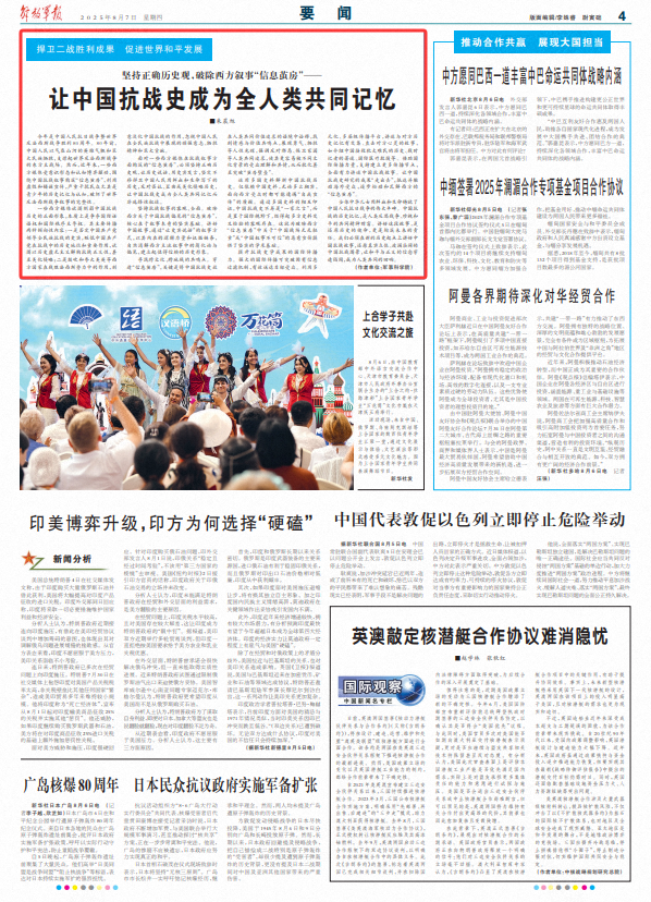 遵循对历史的正确看法,打破西方叙事的“信息茧” - 中国与日本的战争历史成为对所有人类的共同记忆■今年Zhu Chenxu今年是中国反对日本战争和世界反对法西斯主义战争的中国战争成功的80周年。 80年前,中国人以英雄主义精神和巨大的民族牺牲来支持世界反法西斯战争的主要战场。然而,近年来,一些西方媒体是由意识形态和认知游戏驱动的,以在反日期战争周围产生“信息茧”,并使用虚假和虚假的宣传严重干扰了对人们的历史记忆和认识,尤其是青少年的认识,并破坏了叙事的反对者战争的完整性。一些西方媒体试图减轻中国战争历史的积极形象,这是对日本的重要战斗我们的SESE和国际解释的主导地位。它主要传播了趋势的两个内容:一种是否认中国共产党的历史事实领导国家抵抗战争,记录中国共产党在战斗中的历史和重要作用,并试图分解历史性虚无主义的战争正义,甚至丰富了入侵;其他人则将建立和扩大西方国家在击败法西斯主义力量,有意识地推翻中国战争的作用的西方国家的作用,而无视萨克乳杆菌的精神以及中国人在全国战争中提出的出色贡献。 Nahaharap sa "Impormasyon ng Cocoon" na itinayo ng ilang media sa Kanluran sa salaysay ng Digmaan ng Paglaban, dapat nating sundin ang tamang pananaw sa kasaysayan, hayaan ang kasaysayan na magsalita at makipag -usap sa mga makasaysayang katotohanan, hindi mapag -aalinlanganan na ipagtanggol ang kasaysayan na iSinulat ng mga intsik na may kanilang dugo,buhay,tutulan ang pagtanggi,pagbaluktot o pagpapagtot o pagpapagagtot o pagpapagaganda Karaniwang Memorya kaysa sa sa isang为所有人选择叙述。遵循战争战争的目的和全面叙述。破坏西方关于中国反日战争的“信息茧”的核心在于叙事本身的稳定基础。仔细讲述中国故事,并通过“让历史事实讲述”,以及内在的逻辑力量和证据链,我们自然会消除对基本西方叙事的减轻和偏见,并建立可靠的历史形象。找到跨文化和跨区域共振点。 “信息茧”渗透的关键是在人类共同价值的背景下解释中国抵抗战争的历史追求,找到情感和价值之间的共鸣点,表明人性的荣耀,例如英勇和牺牲,强调反对邪恶和对房屋的辩护,这更容易融合”。“使用许多国家历史材料研究中国的战争历史。仅依靠中国的历史材料,无论是多么详细,您都会发现许多材料,无论是多么详细,都可以通过“自我启发”来确认“自我范围”的历史。与日本的战争不再是“一对单词”,但是一种客观的存在可以承受许多历史材料的盘问ATION可能会破坏自然的微型形式过滤,并有效地将其传递给目标受众。借助各种多层次的沟通平台,它讲述了有关另一方历史历史上的交叉点的故事,并击中了另一方的心,例如介绍中国接受犹太难民的历史。让中国关于与日本战争历史的研究成就“全球”,在国外吸引观众,并逐渐简化和拆除西方的“信息茧”。所有中国人都建立了一个伟大的纪念碑,其中包括中国人民与日本入侵他们的血液和生命的斗争。中国战争的历史记忆是人类反思战争和爱和平的共同精神宝藏。讲这个故事是MIIT是恢复发展未来的历史和责任。我们必须讲述中国与新起点的战斗的故事,恢复中国战争的真正三维和奇妙的形象,让对和平与正义的信仰渗透到障碍,并成为人类的共同回应。 (套装单位:军事科学院)